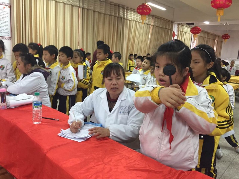 南康好視立愛眼老師認(rèn)真地為蓉江街道大樹小學(xué)的同學(xué)們檢測視力。